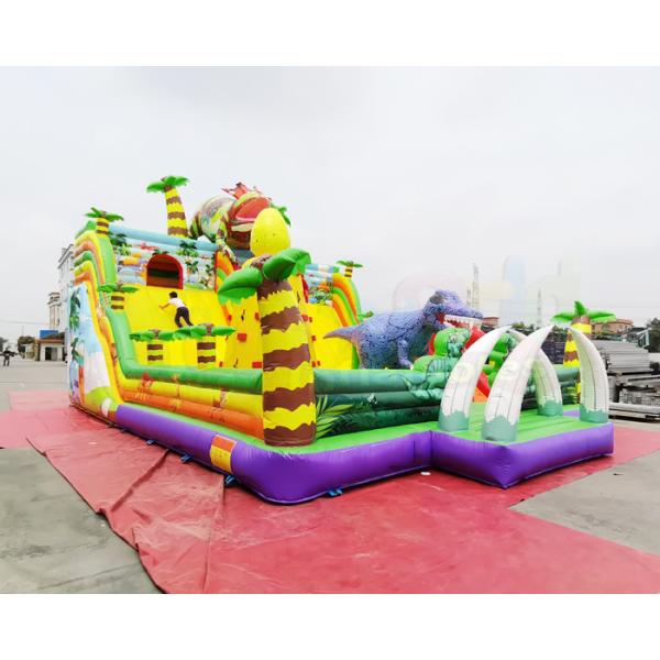 Giant Backyard Dinosaur Jungle Park Climbing Bouncer Obstacle Course Bounce Castle Inflatable Slide